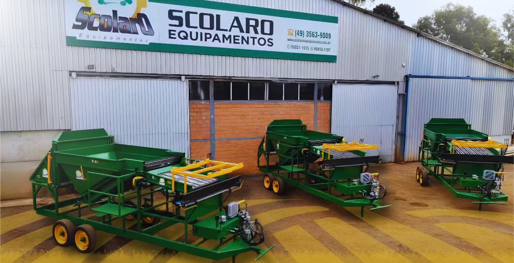 O equipamento de pré-corte foi desenvolvido para realizar o corte inicial dos talos de cebola diretamente na lavoura, agilizando a colheita e reduzindo a necessidade de retrabalho. Seu acionamento é feito pela tomada de força do trator, que movimenta os motores hidráulicos responsáveis pelo Tombador, Silo Alimentador, Sistema de Pré-corte e Esteira de Saída.